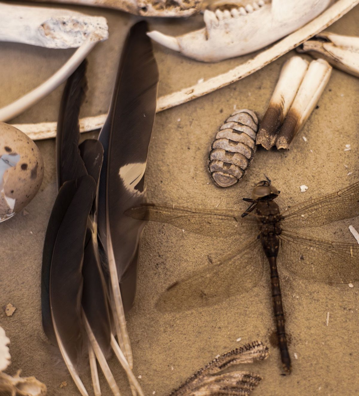Sophie’s collections of the bits-and-pieces she has found here-and-there in the natural environment give her studio the feeling of a small, natural museum, from a lost world. These are the objects she has gathered on walks, for remembering and inspiring. They are scattered throughout the studio, but also laid out and organised in the many specimen drawers under the workbench. ‘That drawer is the King Island drawer’ she told us as we started opening them.
