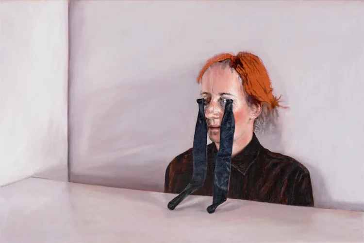 The feelings are familiar, but to see them portrayed in oils on canvas takes them across an imaginary and dangerous border. The un/masked artist caught in the privacy of her true feelings.