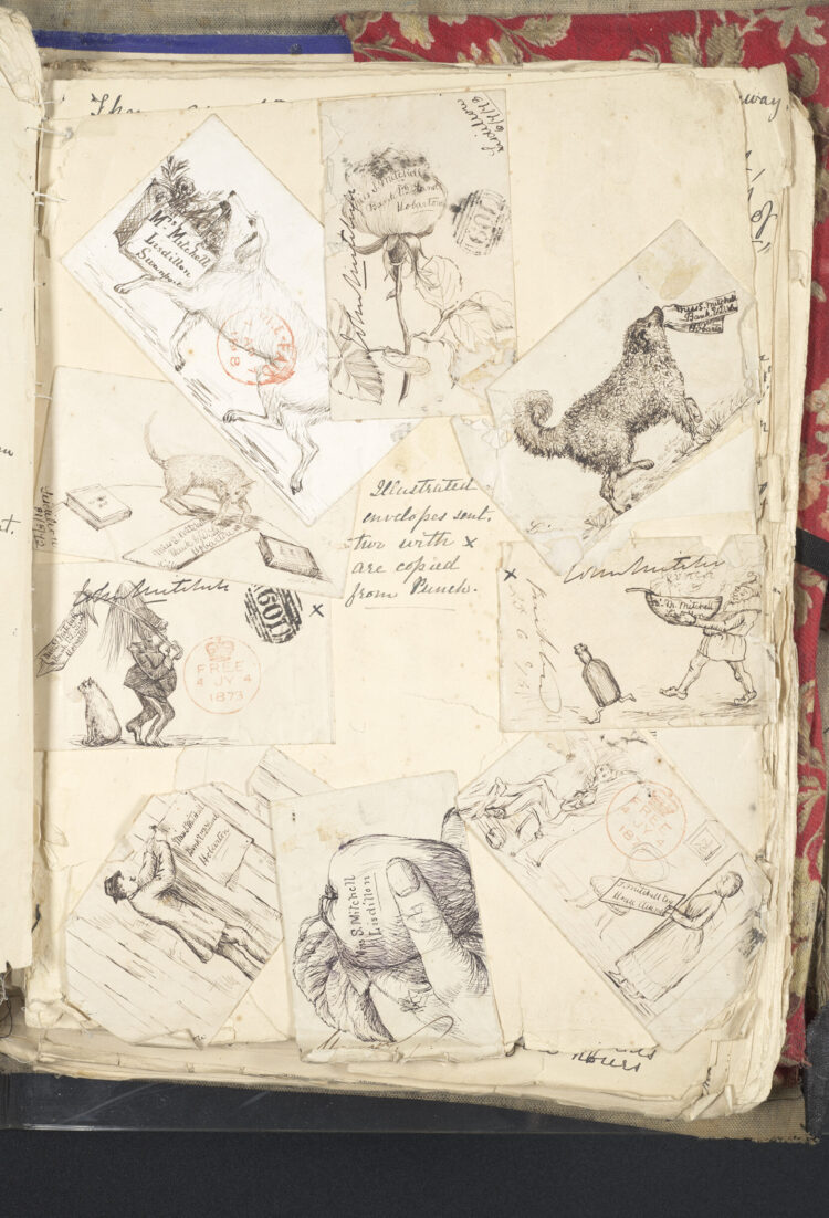 Kate’s illustrated envelopes addressed to friends; some copied from Punch magazine.