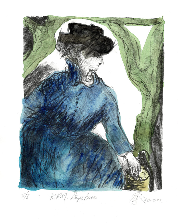 Jane was inspired to study Kate’s drawings and to learn more about this unique young woman. Like Kate, Jane loves drawing in pen and ink, and she has studied and taught printmaking. She saw potential for a doctorate degree: she would research, write and prepare artworks that responded to Kate’s drawings.