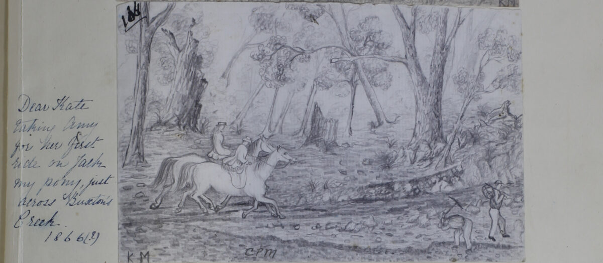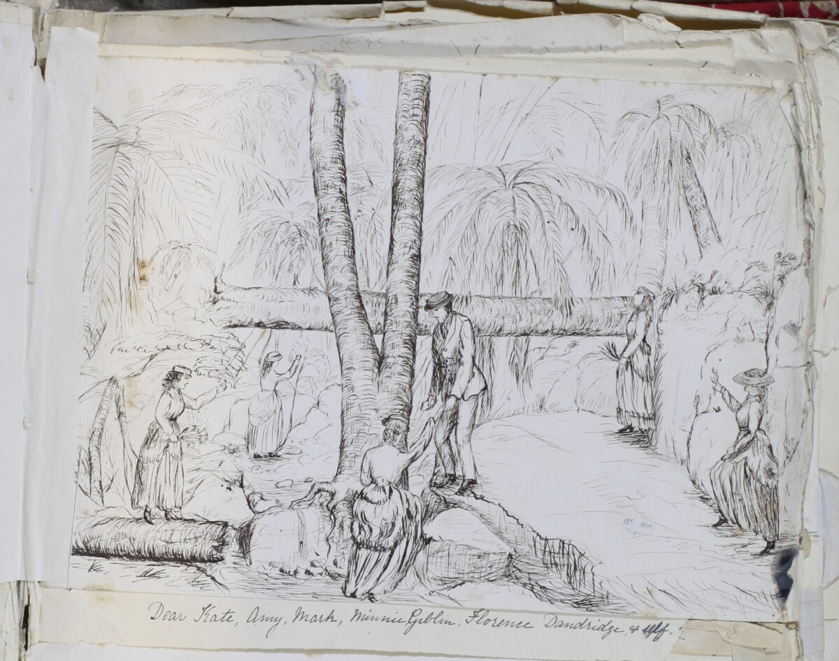 Kate’s work is unconventional not only for her gender but for the times. There is no historical evidence of colonial Australian artists using pen and ink to draw personal events and activities. The occasional pen and ink landscapes are found but these are often in private journals.¹
