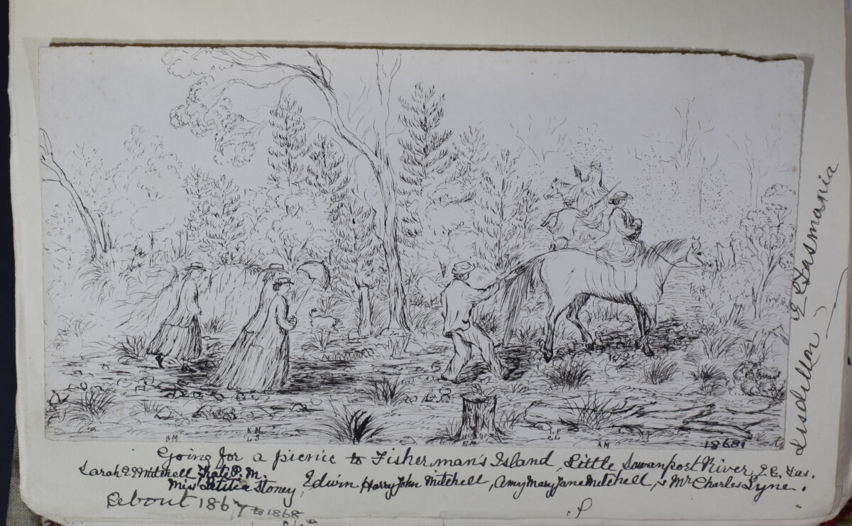 All historical imagery, except where noted, from The Sarah Mitchell Scrapbook by Catherine Penwarne Mitchell including annotations by Sarah and Grace Mitchell, courtesy of the Royal Society of Tasmania, also known as the Sarah Mitchell Diaries, RS 32/4.