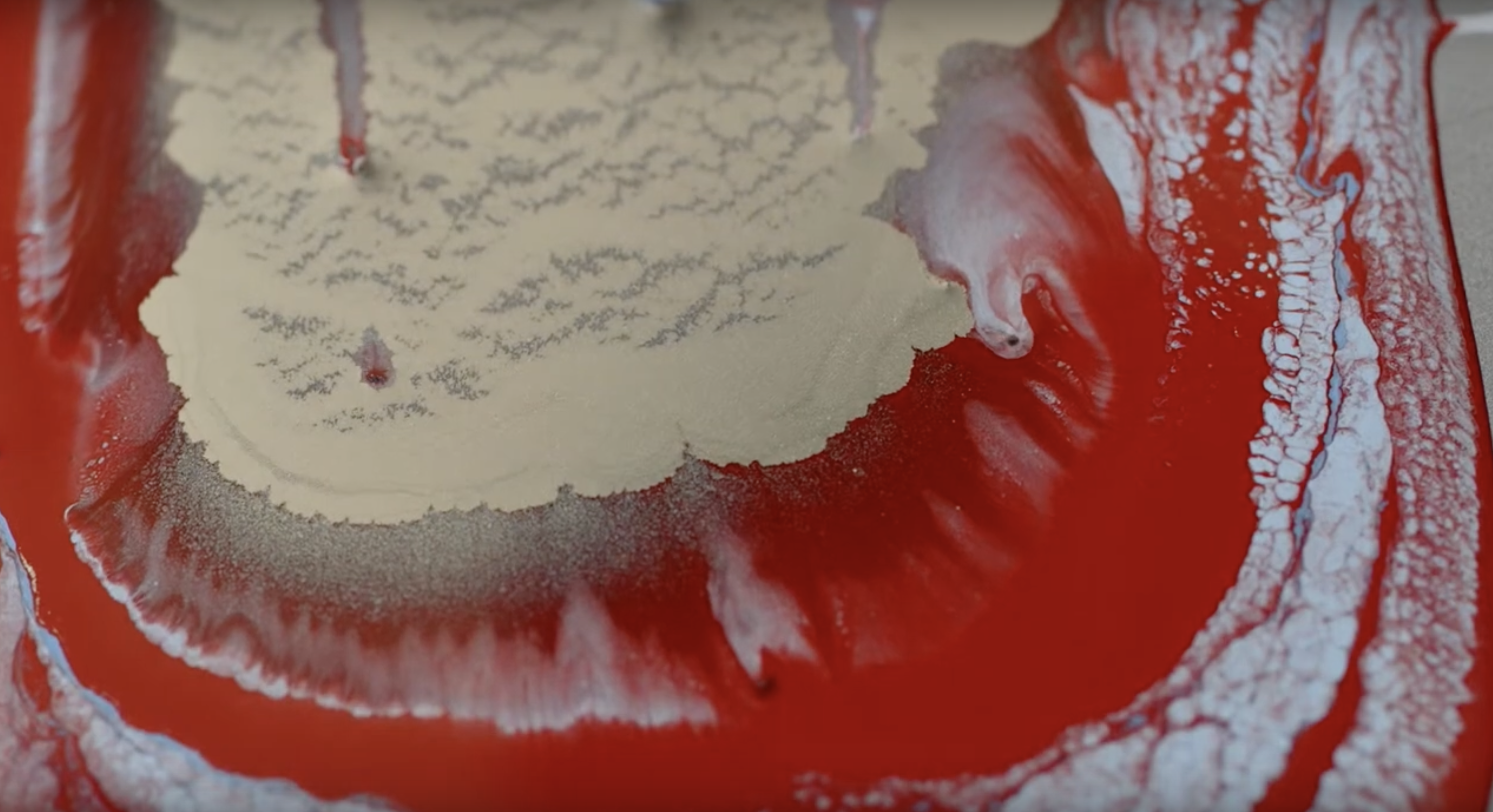 In our commodified times, what “serious” artist heads out into the unknown like this – on purpose? But Megan knows that at some cosmic level, she isn’t in control in of her creative forms. She is coalescing paint in response to her impulses.